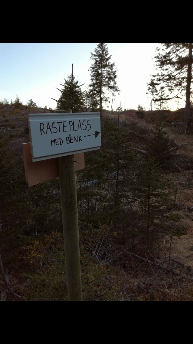 Denne turen kan du gå med barnevogn. Litt bløtt noen plasser. Med rullestol kan du gå turen motsatt vei. Gå gjennom gården og ned bakken. Følg veien til du kommer til et skilt. Følg traktor vei. Kassen er på toppen av en bratt bakke.