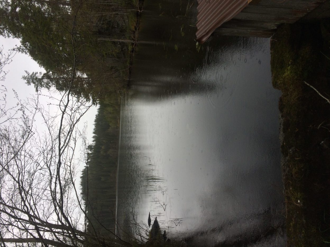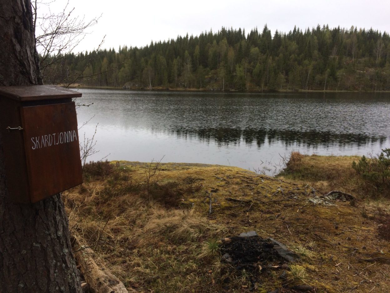 Det er fint å fiske ved Skardtjønna der kassen henger.