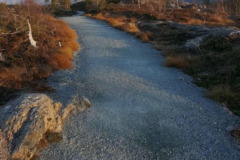 Turen går på opparbeidet sti som er gruslagt og min 1 meter bred. Stien er noen steder bratt, men det er mulig både med barnevogn og elektrisk rullestol.