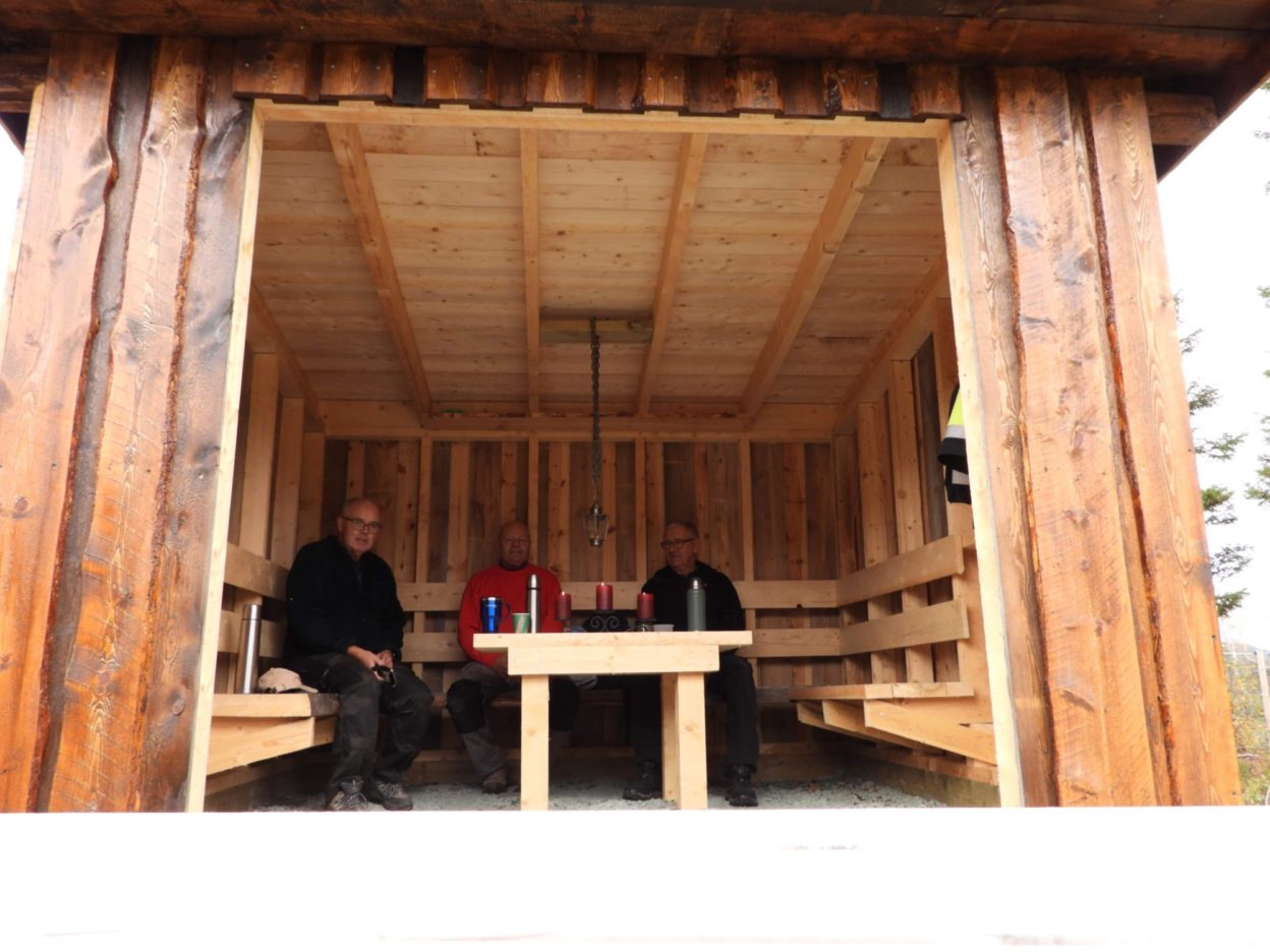 Sommeren 2020 ble det satt opp gapahuk. Minner om at det er bålforbud her, ta heller med mat som kan nytes i og utenfor gapahuken. Fottøy: joggesko
